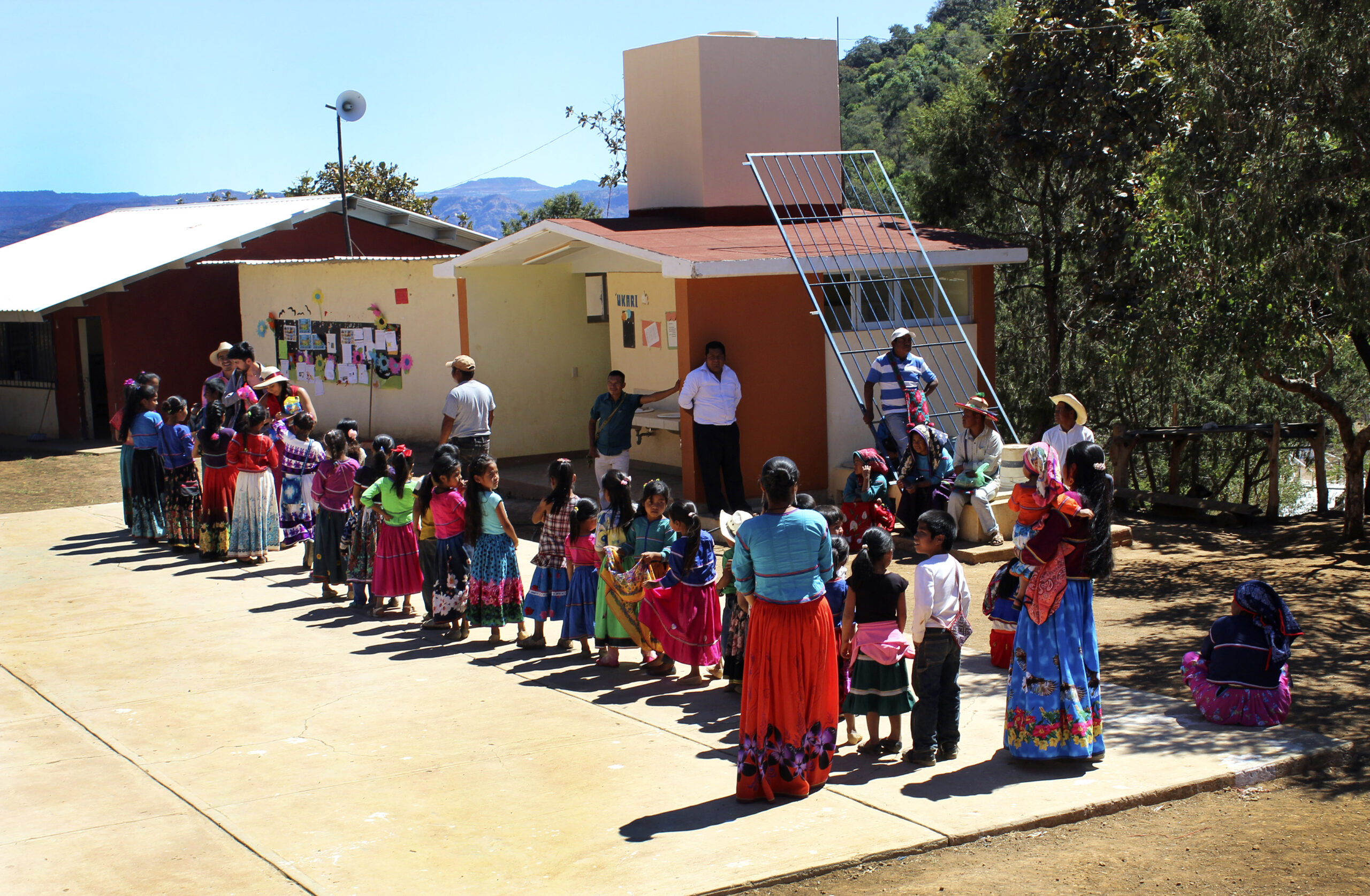 Al llegar a la escuela nos recibieron los padres de familia, profesores y alumnos de la comunidad, realizamos el corte del listón y el M.I Federico Alba dirigió unas palabras respecto al proyecto, “Cada uno de nosotros podrá contar una historia diferente, pero a todos de seguro en algún momento de nuestra niñez nuestros papás o nuestros maestros hicieron que nos preocuparnos por los demás, realmente esa es toda la raíz del porque hacer este proyecto, no es una estrellita de premiación que nos pertenezca a nosotros, realmente es una responsabilidad que debemos cumplir”.